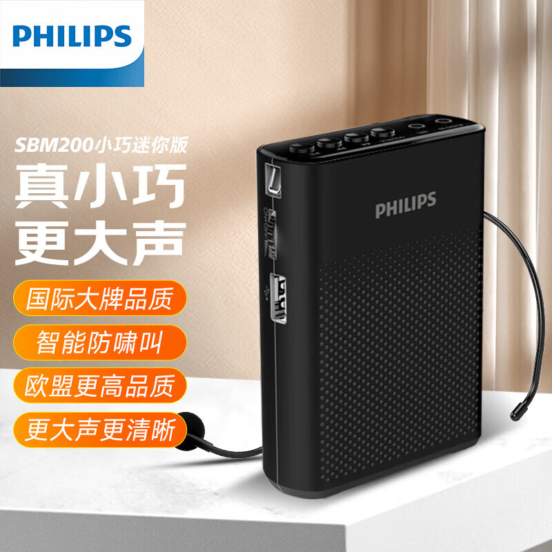 飞利浦(PHILIPS)SBM200 小蜜蜂扩音器便携插卡音箱会议扬声器麦克风喇叭喊话教师导游专用教学讲课户外小巧迷你黑价格:199.00元!