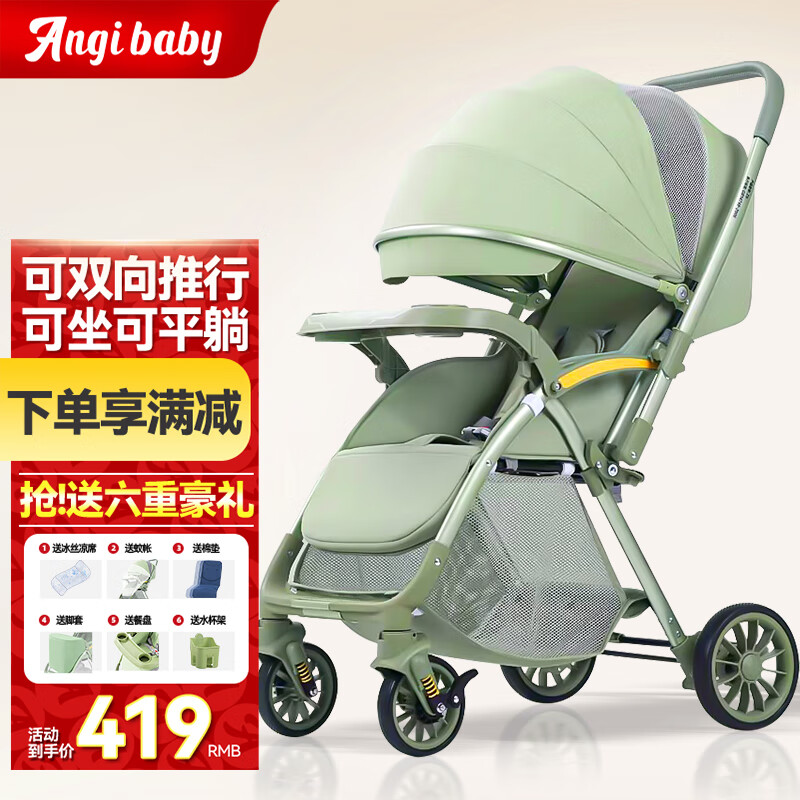 ANGI BABY婴儿推车可坐可躺可折叠减震婴儿车双向伞车宝宝bb小孩手推车童车价格:419.00元!