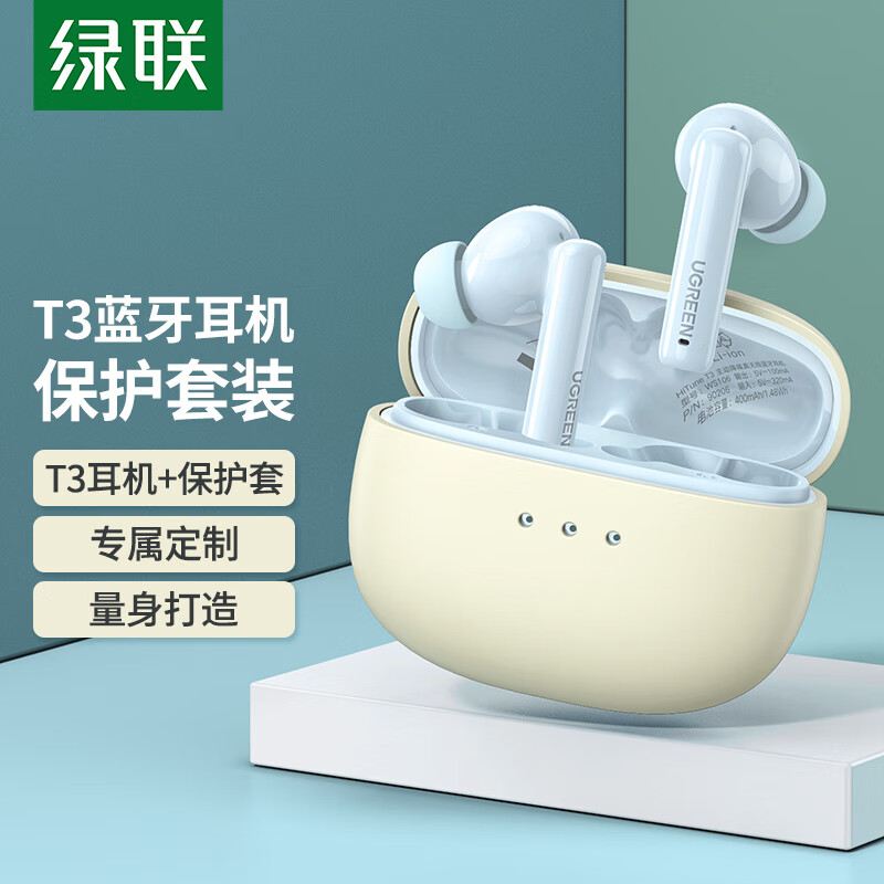 绿联(UGREEN)HiTune T3无线蓝牙耳机保护套装 ANC主动降噪音乐耳机 通用苹果华为小米手机 90598+90569价格:139.00元!