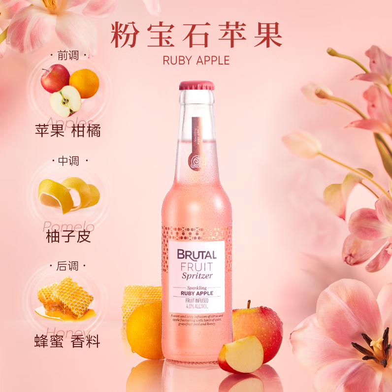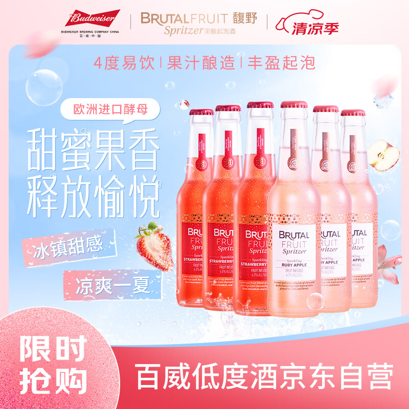 馥野百威Brutal Fruit果酿起泡酒鸡尾酒微醺果酒混合口味275ml*6瓶价格:71.00元!