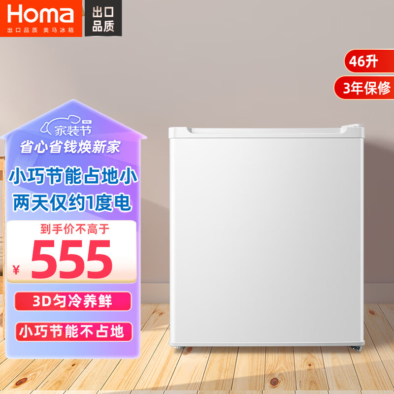 奥马(Homa)一级能效单门节能迷你小冰箱 家用出租房宿舍酒店办公 冷藏保鲜小型电冰箱价格:599.00元!