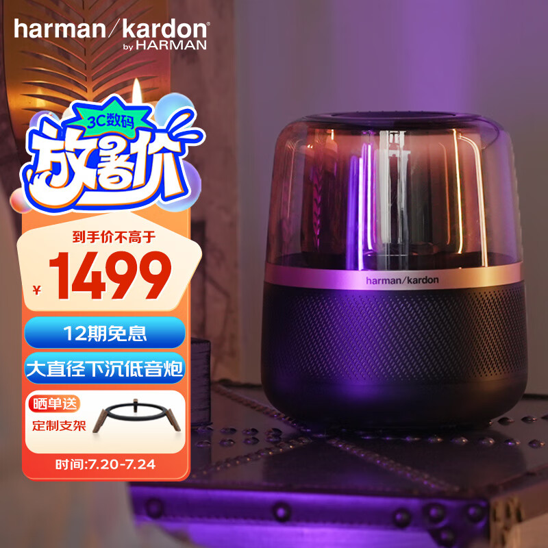 哈曼卡顿(Harman/Kardon)音乐曜石蓝牙音响桌面电脑家用无线音箱扬声器仿琉璃外壳4喇叭琥珀二代女神礼物Allure Essential价格:1599.00元!