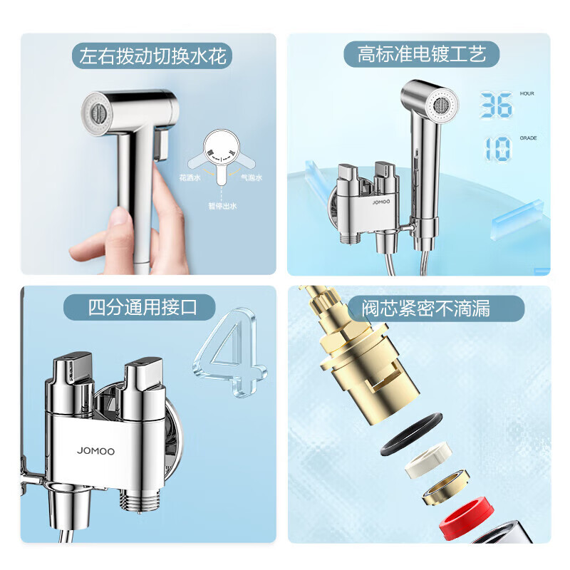 九牧(JOMOO)双控双出浴室冲洗器喷枪角阀马桶伴侣74095-706/1B-1价格:158.00元!