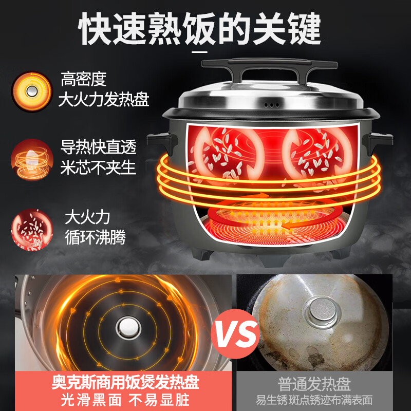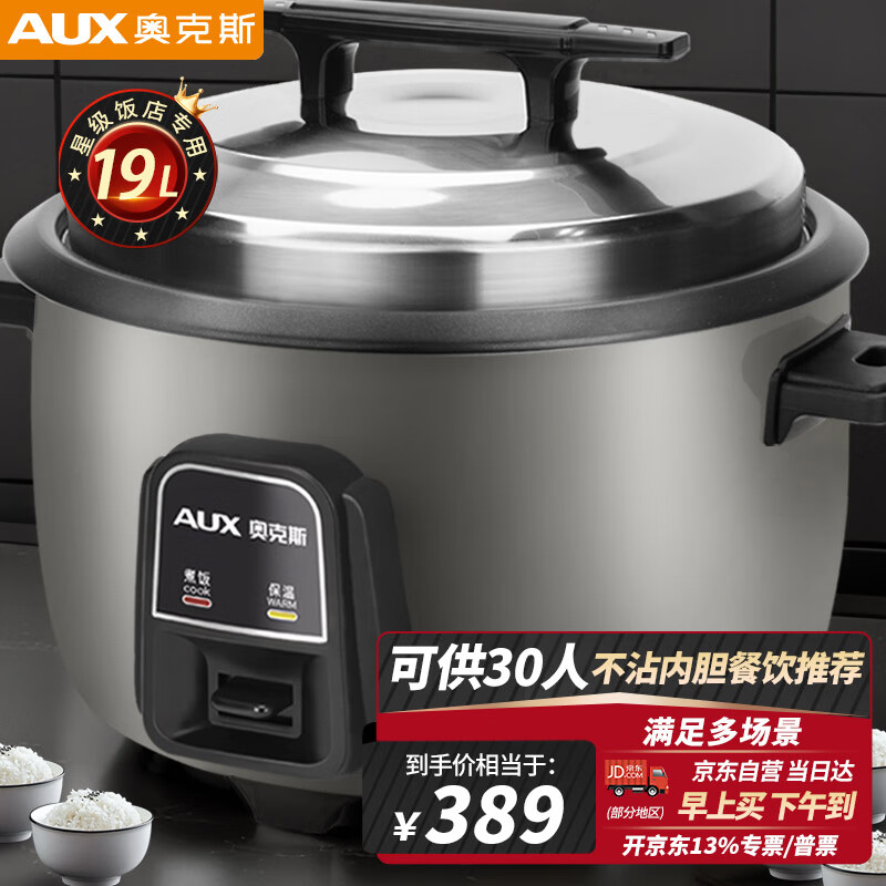 奥克斯(AUX)商用电饭锅酒店大电饭煲食堂用饭店西施保温蒸饭锅 大型电饭锅蒸笼 19升 适用20-30人价格:389.00元!