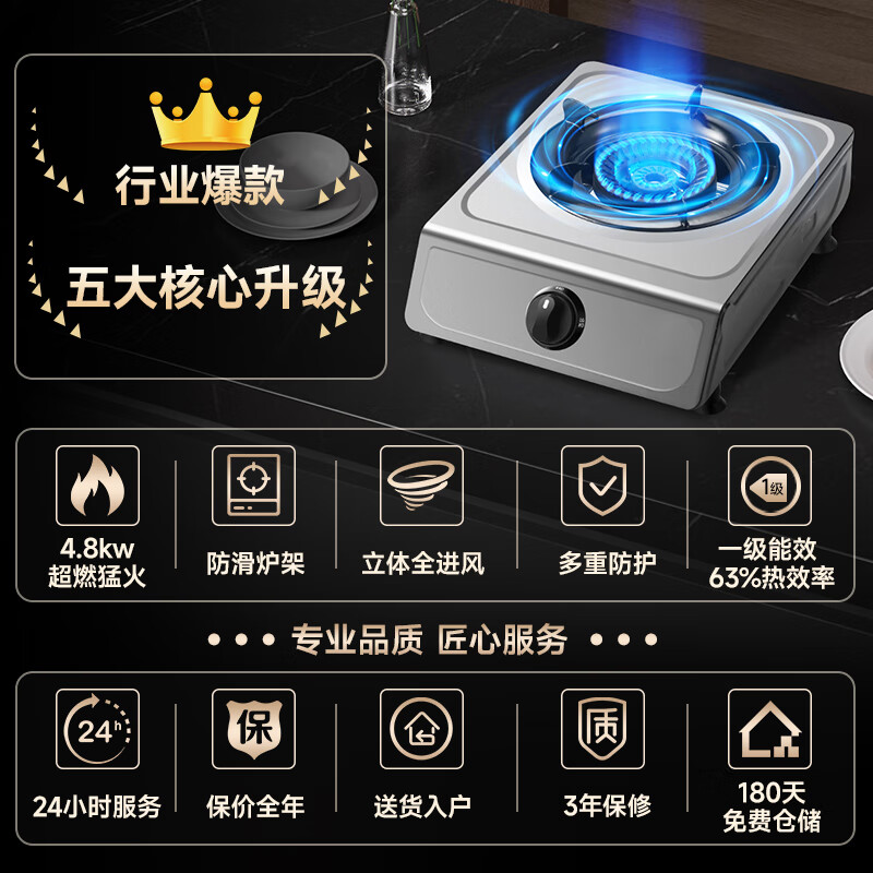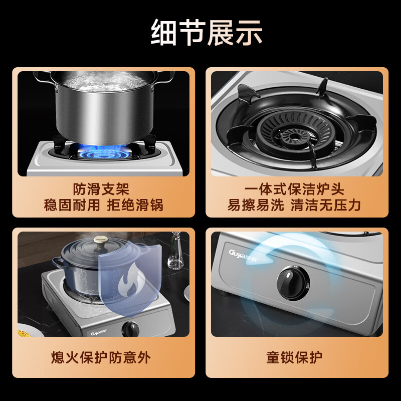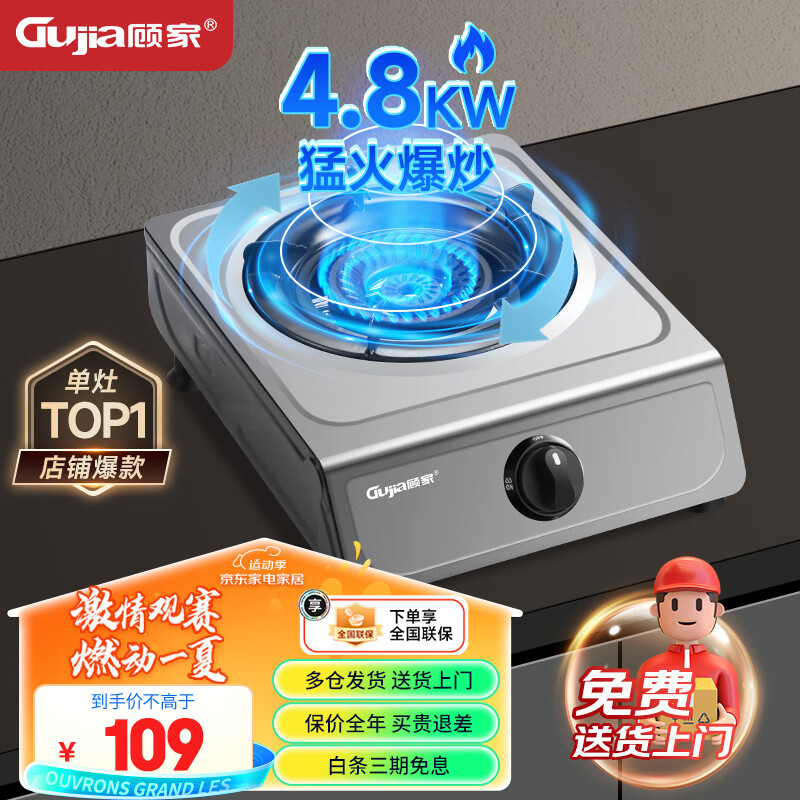 顾家(Gujia)燃气灶单灶煤气灶家用台式不锈钢4.8KW大火力猛火节能单眼炉具JZY-DT1(液化气)价格:105.00元!