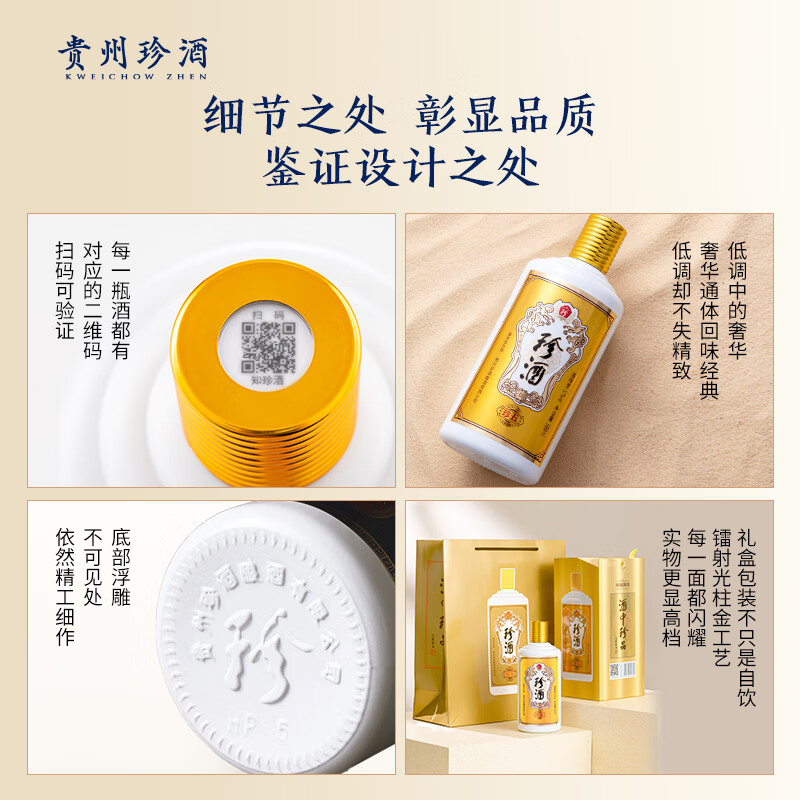 珍酒53度酱香型白酒 酒中珍品 单瓶装配置参数: