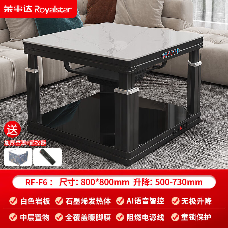 荣事达电暖桌0.8米正方形电炉取暖桌家用升降烤火炉茶几电暖炉烤火桌餐桌两用取暖炉取暖器RF-F6价格:1873.00元!