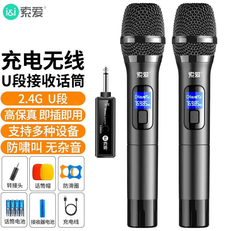 索爱(soaiy)充电接收器无线麦克风家庭KTV唱歌舞台主持演讲K歌会议音箱音响功放一拖二金属话筒SA-WS8价格:259.00元!