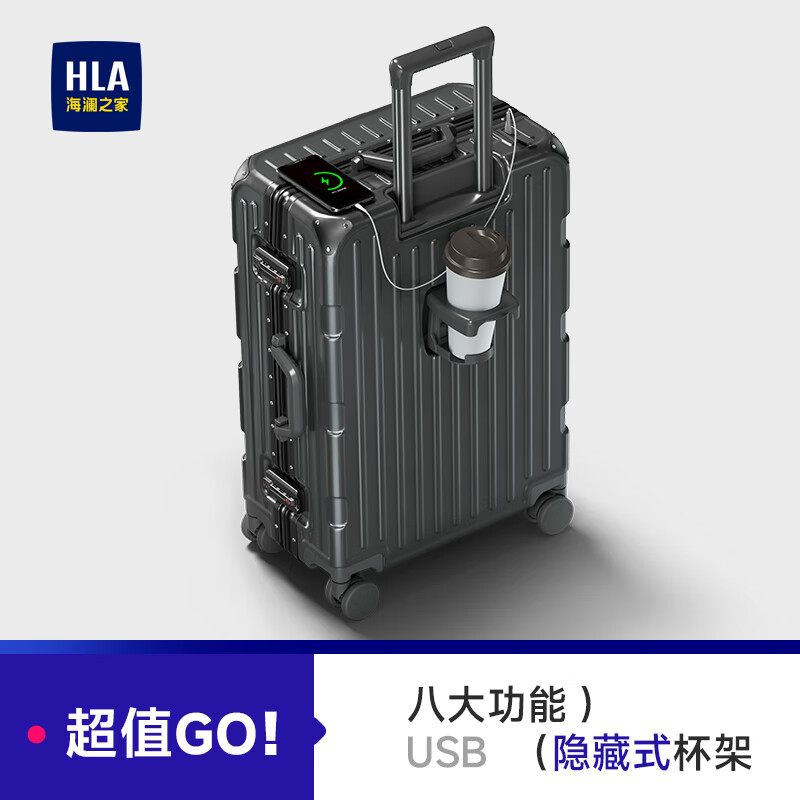 海澜之家(HLA)行李箱男女学生铝框拉杆箱旅行密码托运皮箱 曜石黑24英寸价格:419.00元!
