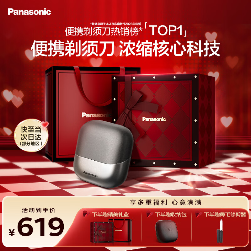 松下(Panasonic)小方盒剃须刀电动便携往复式刮胡刀磁悬浮马达进口三刀头七夕情人节礼物男士送男友老公CM30黑价格:619.00元!