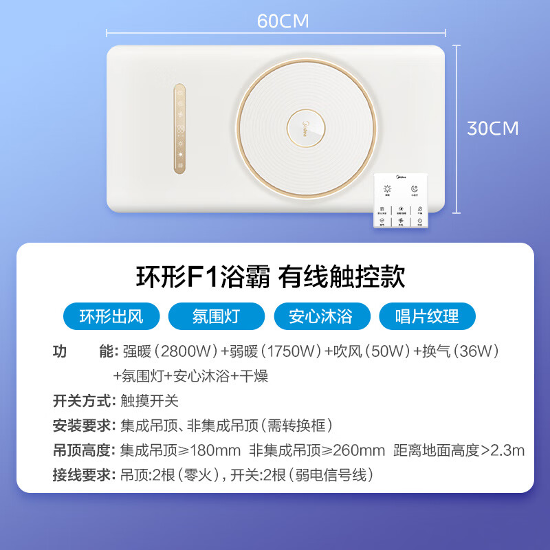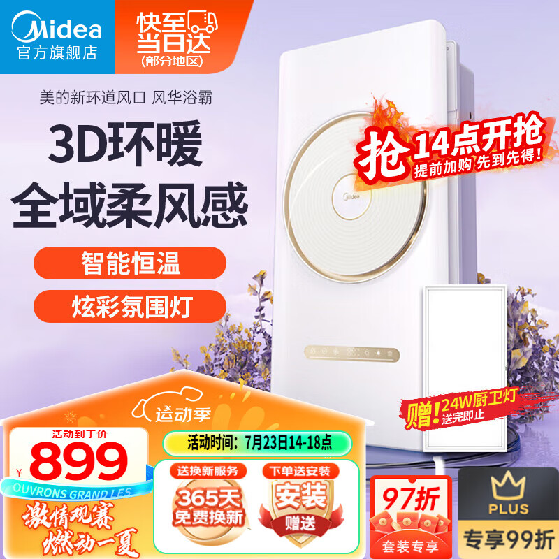 美的(Midea)风暖环形浴霸智能浴室排气取暖器卫生间集成吊顶双电机风华暖风机价格:999.00元!