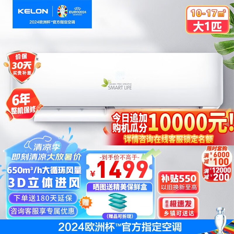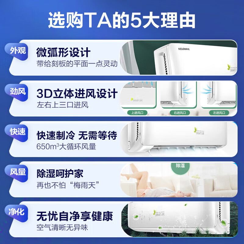 科龙(KELON)大1匹新能效定频单冷自清洁快速制冷除湿壁挂式挂机卧室家用空调KF-26GW/QA1X-X5价格:1499.00元!