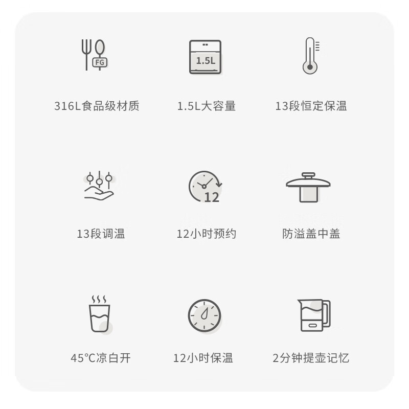 功能:温度调节,提壶记忆,自动断电