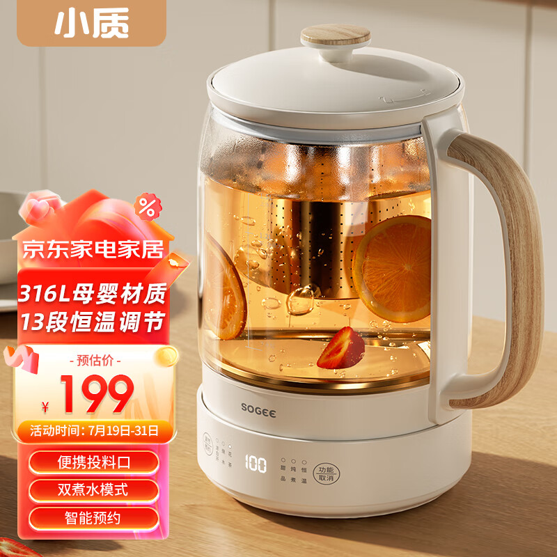 小质养生壶办公室家用大容量316不锈钢煮茶壶煮茶器烧水壶电热水壶恒温玻璃带滤网一体全自动1.5升L价格:199.00元!