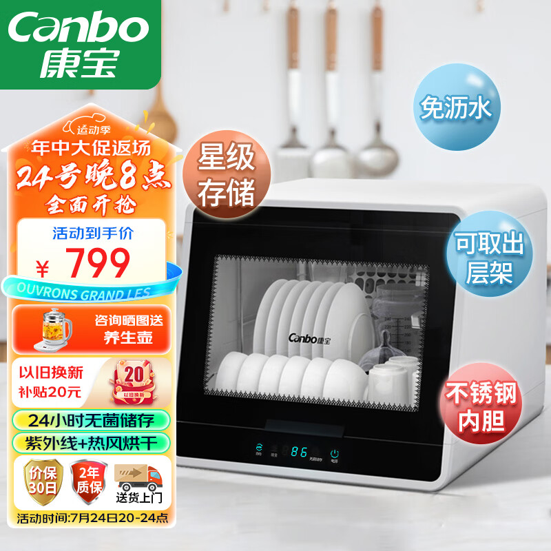 康宝(Canbo)消毒柜家用小型迷你立台式餐具碗筷桌面免沥水消毒碗柜 紫外线婴儿奶瓶烘干砧板消毒机器 XDZ48-A1价格:899.00元!