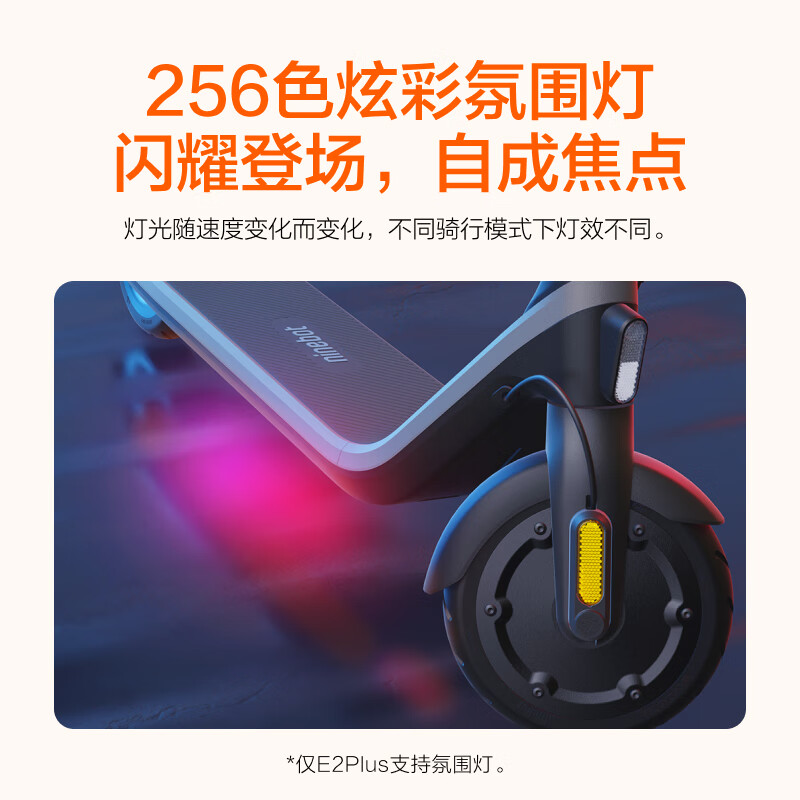 Ninebot九号电动滑板车E2Plus 成人学生耐用便携可折叠智能电动车炫彩氛围灯大屏仪表体感车价格:1899.00元!