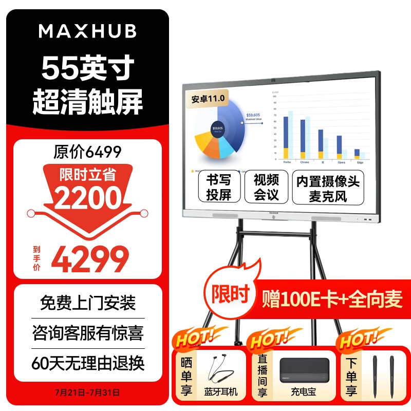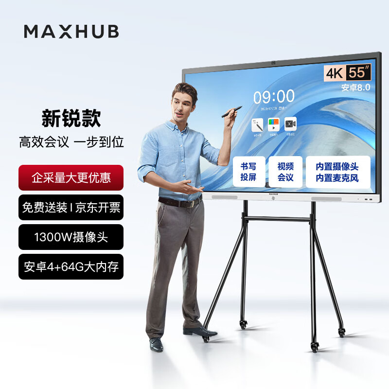 MAXHUB新锐55英寸 会议平板一体机 智慧屏电子白板黑板 多媒体教学投影会议一体机会议触摸屏 会议显示器价格:4299.00元!