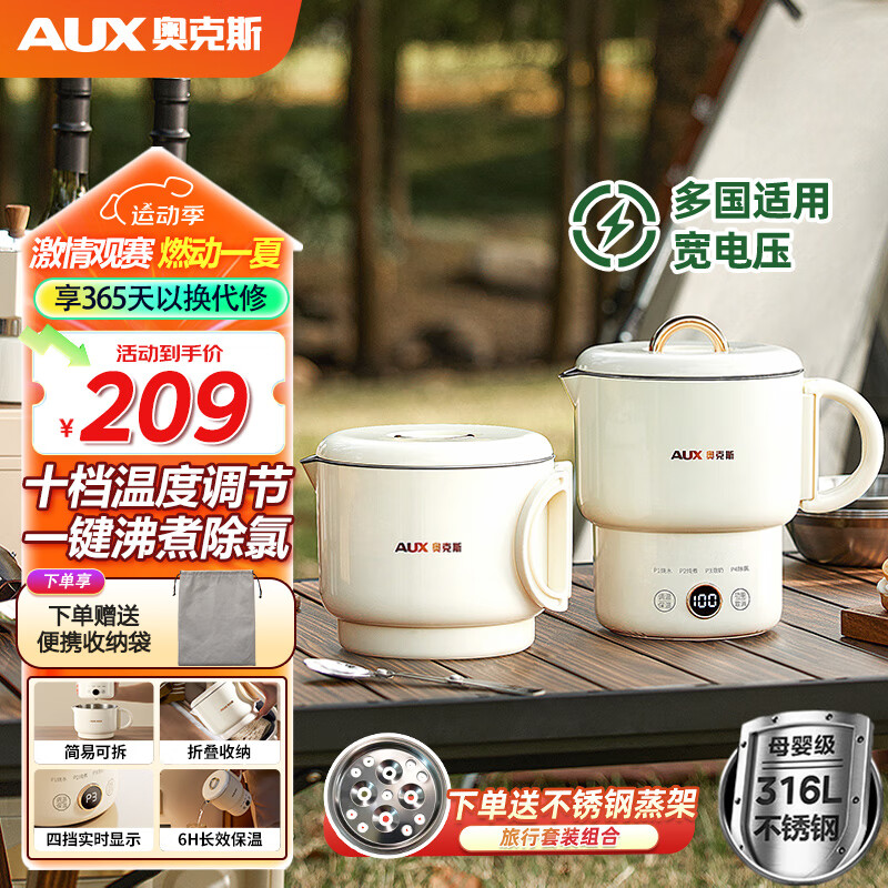 奥克斯便携式烧水壶电水壶折叠水壶电热水壶迷你旅行316L不锈钢智能数显保温水壶【蒸架款】AAS-05ASBP01价格:209.00元!