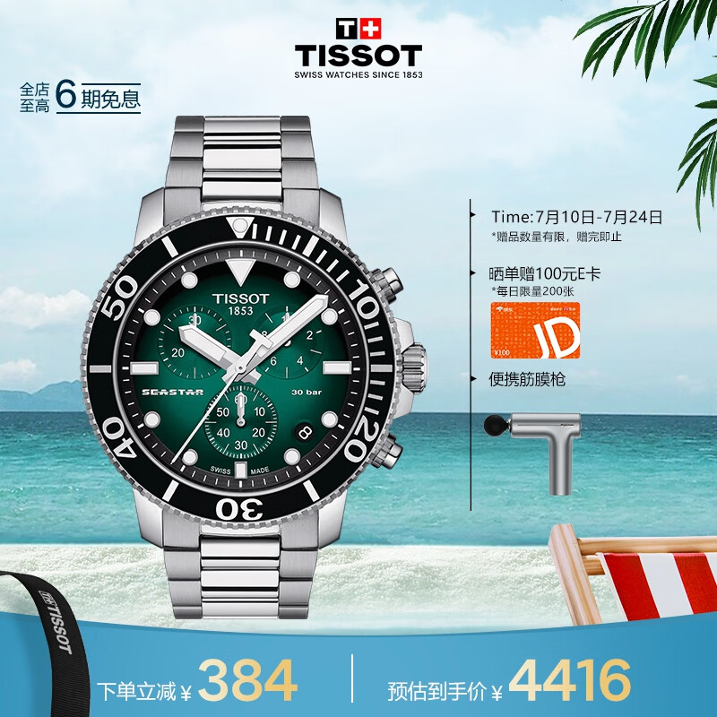 天梭(TISSOT)瑞士手表 海星系列腕表 石英男表 七夕送男友T120.417.11.091.01价格:4800.00元!