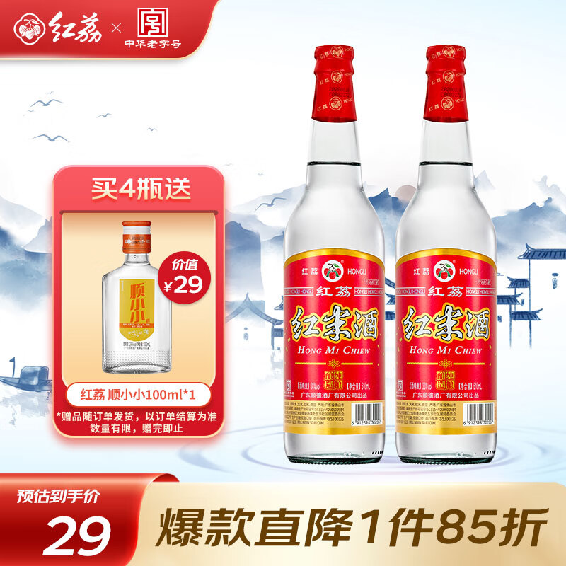 红荔牌 米香型白酒 30度610ml*2 红荔红米酒广东米酒纯粮浸泡酒料酒青梅价格:34.12元!