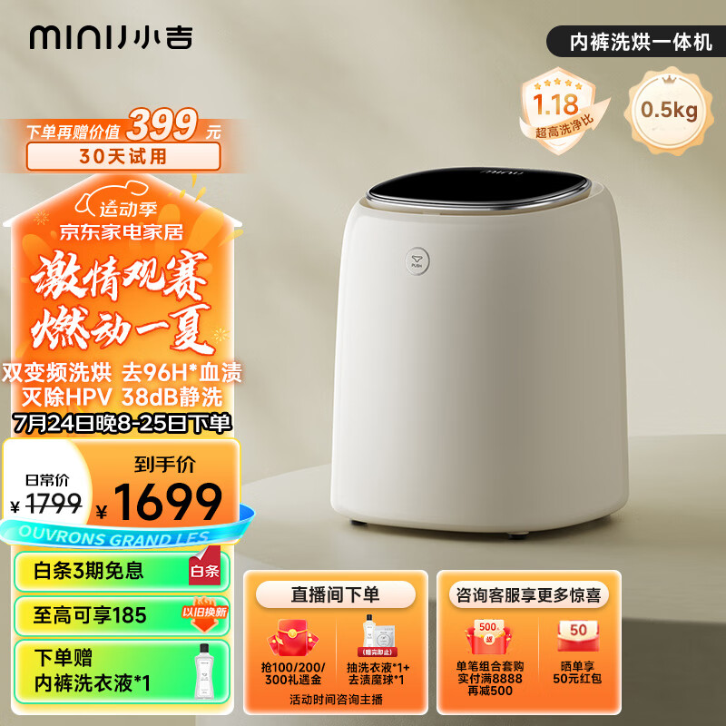 小吉(MINIJ)0.5kg内衣洗衣机小型迷你高温煮洗去血渍洗烘一体变频内裤洗衣机U10-MD价格:1699.00元!