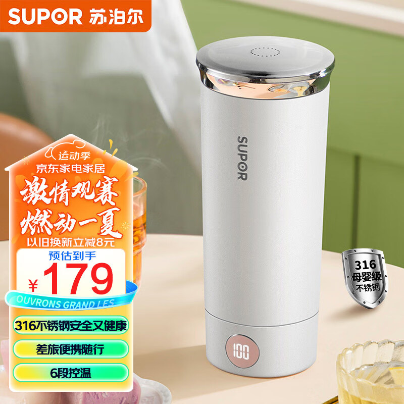 苏泊尔(SUPOR)电热水杯 随行烧水杯 便携式保温烧水壶316不锈钢 旅行冲奶泡茶办公室养生电水壶SW-03T01A价格:179.00元!