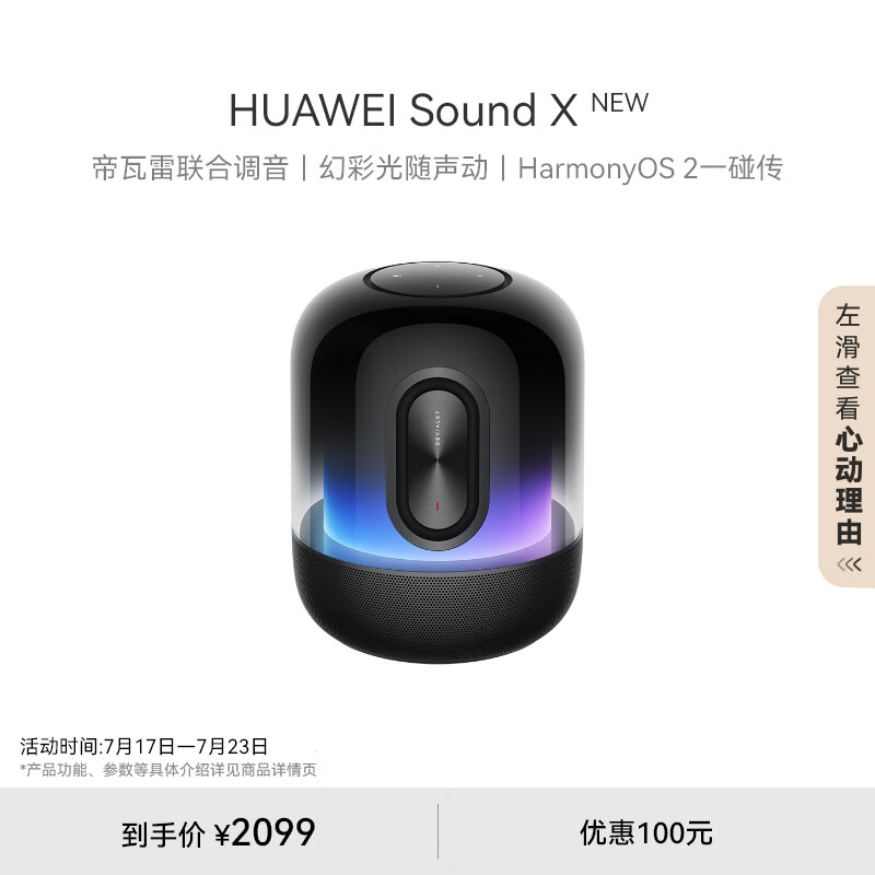 华为Sound X New 蓝牙音箱家用桌面电脑音响 无线立体声帝瓦雷调音 频幻彩灯效智能音响重低音炮价格:2099.00元!