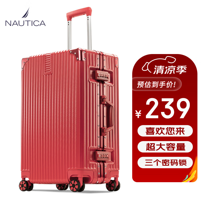 NAUTICA结婚行李箱陪嫁箱28英寸大红色箱子拉杆箱女皮箱婚礼铝框密码箱价格:239.00元!