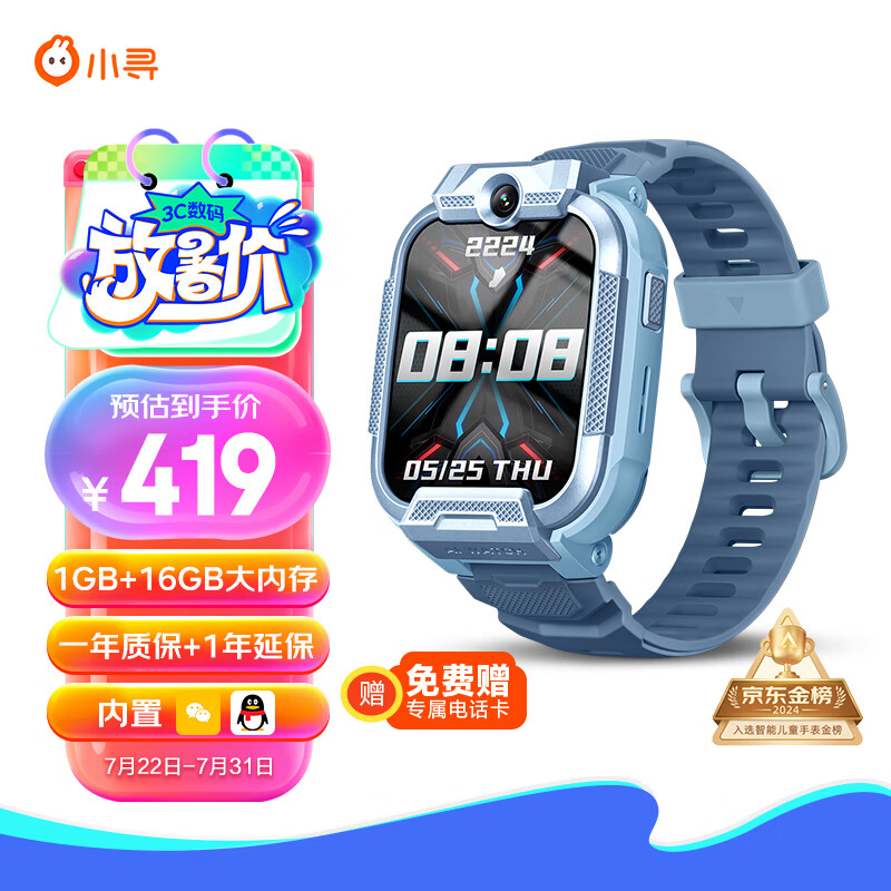 小寻儿童电话手表 4G通微信QQ 插卡定位手表 儿童手表 双摄视频通话手表男女孩礼物 YES3-C天才蓝价格:419.00元!