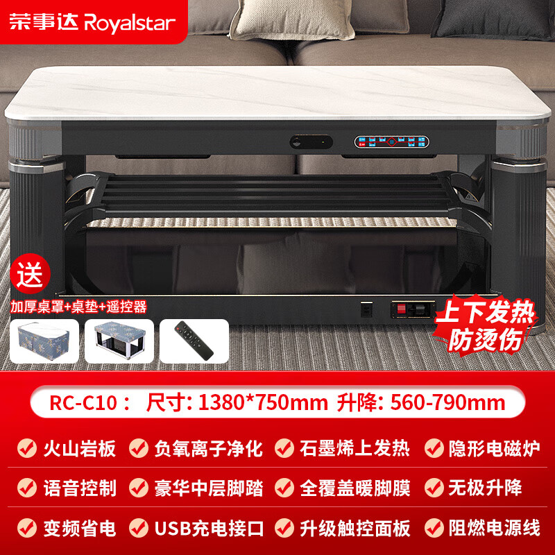 荣事达电暖桌1.38米长方形电炉取暖桌家用升降烤火炉茶几负离子烤火桌餐桌两用取暖炉取暖器RC-C10价格:1999.00元!