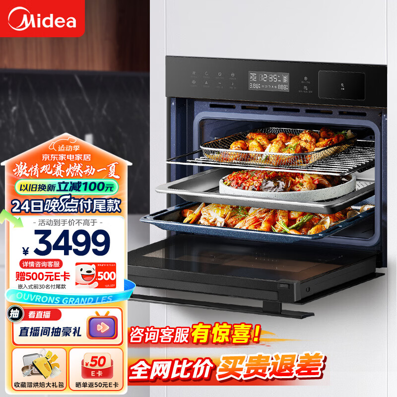 美的(Midea)蒸烤箱一体机嵌入式家用蒸烤箱55L大容量蒸烤一体机 APP智控搪瓷内胆蒸箱烤箱蒸烤炸三合一BS5053W价格:3499.00元!