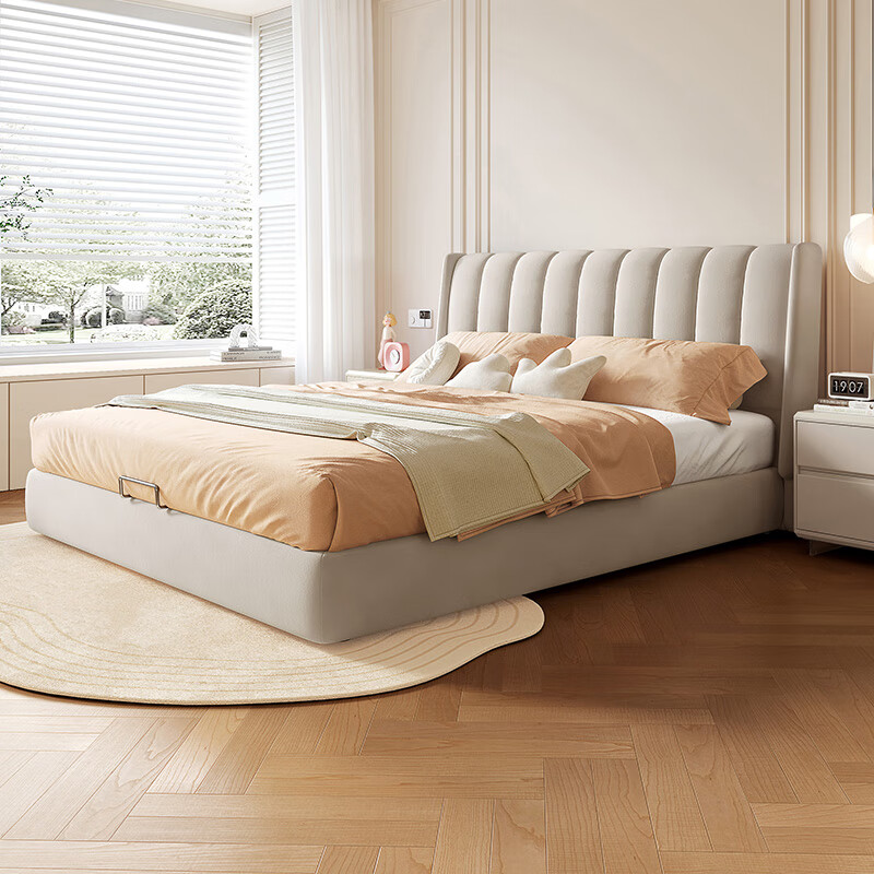 全友家居 床现代简约科技布床双人床高弹海绵床屏齐边布艺大床105207C价格:3927.14元!