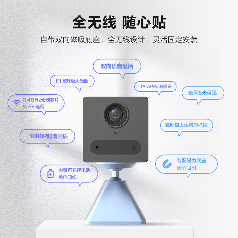 萤石 CB2冰莓粉+64G视频监控专用卡 全无线监控摄像头 200万像素1080P电池相机 免打孔 灵巧吸附价格:469.00元!