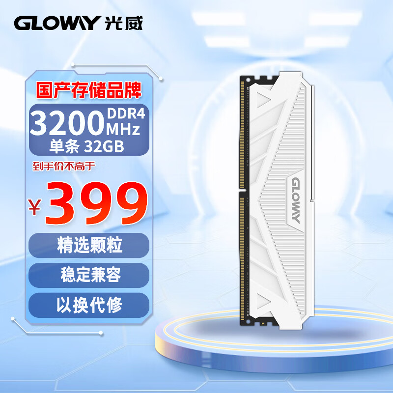 光威(Gloway)32GB DDR4 3200 台式机内存条 天策系列价格:399.00元!