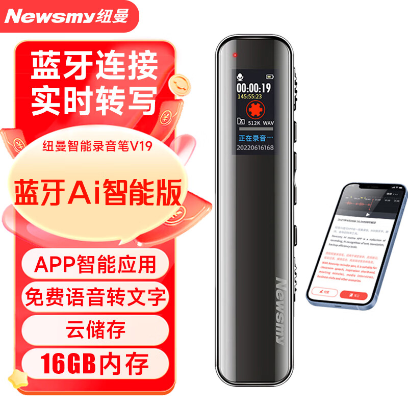 纽曼智能录音笔 V19 16G蓝牙版 会议录音转文字 同声翻译 声文速记 专业高清降噪 一键录音 锖色价格:249.00元!