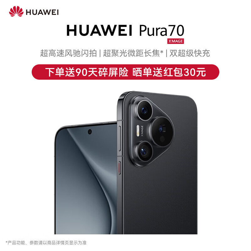 华为(HUAWEI)Pura 70 羽砂黑 12GB+1TB 双超级快充 华为P70智能手机价格:6099.00元!