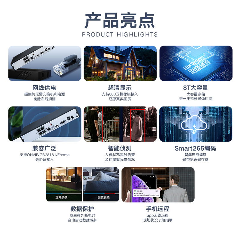 HIKVISION海康威视网络硬盘录像机监控4路POE网线供电NVR满配4个摄像头带4T硬盘DS-7804N-K1/4P价格:1284.00元!