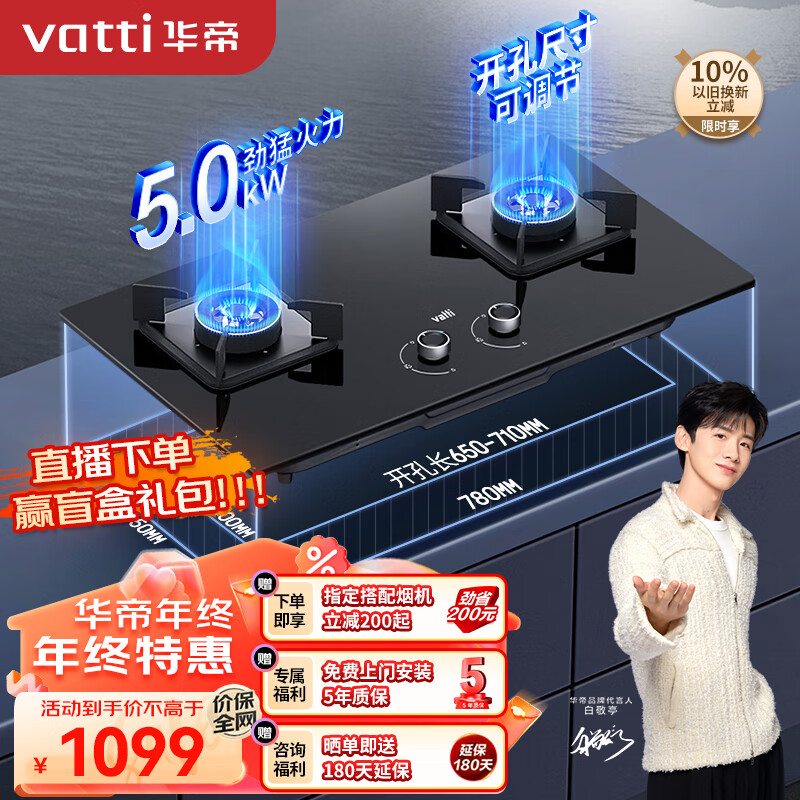 华帝(VATTI)家用燃气灶天然气灶双灶嵌入式 5.0kW大火力猛火灶台嵌两用易清洁灶具灶台换灶不改孔JZT-i10071B价格:1099.00元!