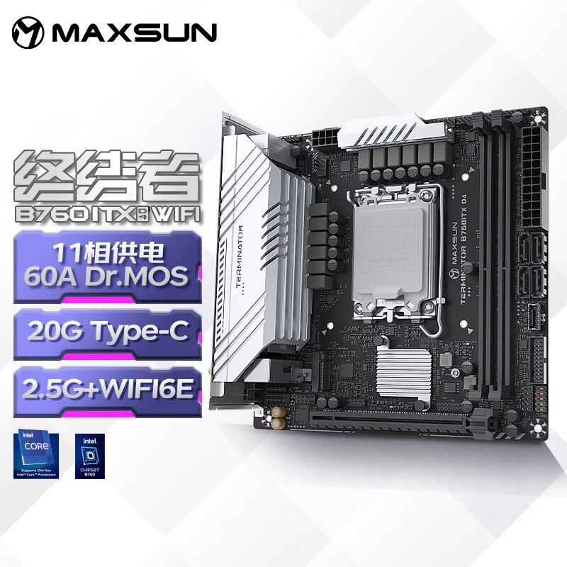铭瑄(MAXSUN) MS-终结者 B760ITX D4 WIFI 支持DDR4 CPU 12490F/13400F/13600KF(Intel B760/LGA 1700)价格:849.00元!