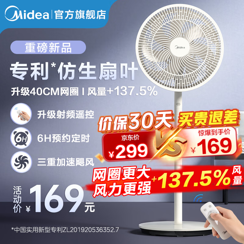 美的(Midea)电风扇落地扇台扇家用大风量遥控摇头电扇宿舍轻音低噪台式桌面两用节能 【24年上新 升级大网圈大风力】SAH35MR价格:299.00元!