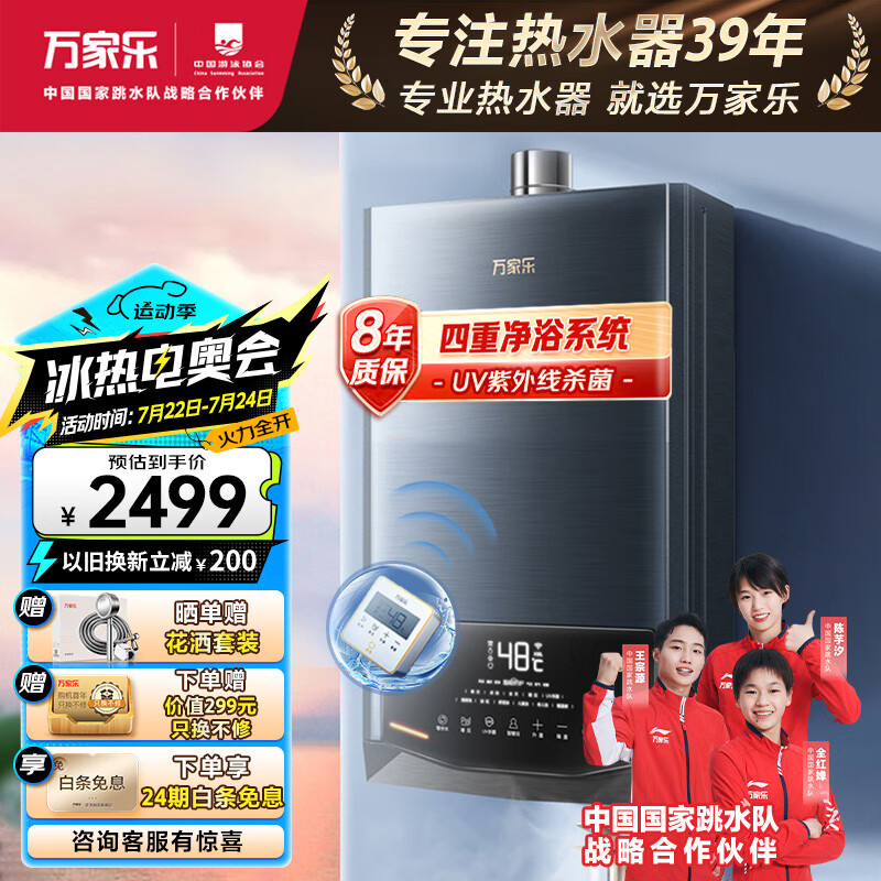 万家乐 18升增压零冷水燃气热水器净滤健康活水无线分控AI智能紫外线杀菌阻垢滤芯JSQ34-18RL8以旧换新价格:2499.00元!