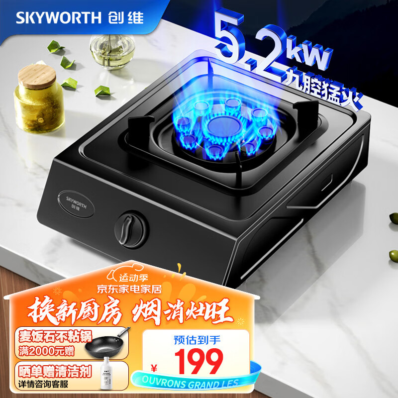 创维(Skyworth)燃气灶天然气单灶家用单眼燃气灶单炉灶台5.2KW猛火台式九腔猛火炉具Z102T(天然气)价格:199.00元!