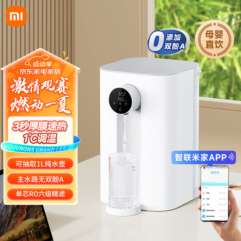 米家小米(MI)台式净饮机乐享版 家用RO反渗透即热净水机 净饮一体机小型免安装 3秒即热直饮水机价格:999.00元!