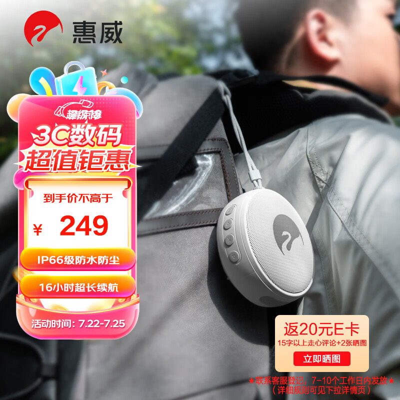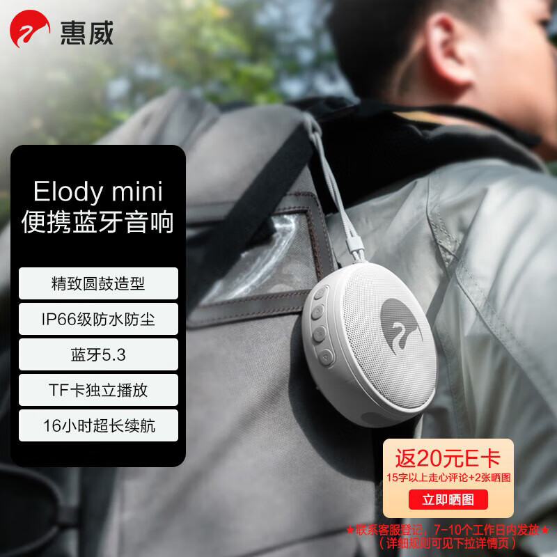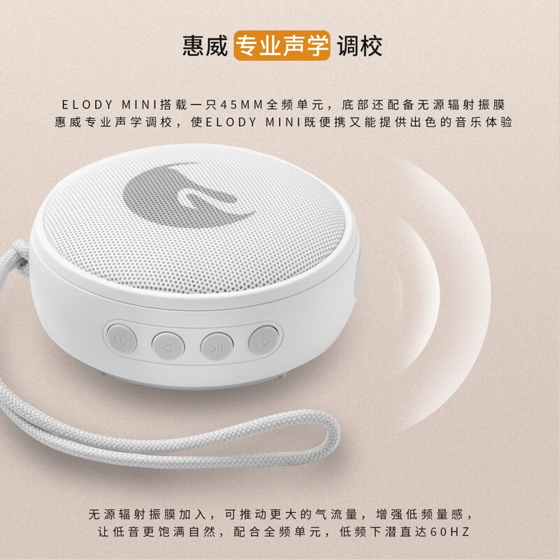 惠威(HiVi)Elody mini便携式音响 户外迷你音箱 长续航 防水防尘设计 晨曦白价格:299.00元!