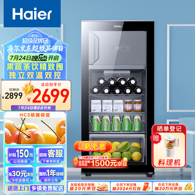 海尔(Haier)133升双温家用客厅办公室冷藏柜暖藏冰吧 茶叶饮料蔬果保鲜柜囤货小冰箱DS0133LH69D1以旧换新价格:2699.00元!