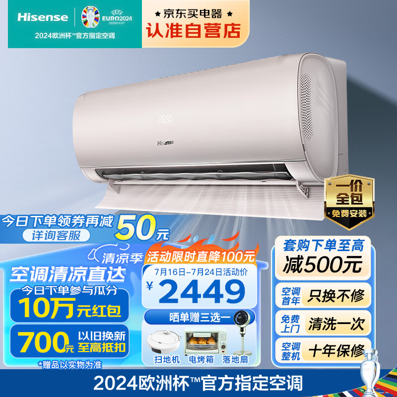 海信空调1.5匹挂机新一级能效免安装费大风量速冷暖防直吹5A除菌舱壁挂空调KFR-35GW/S550-X1以旧换新价格:2449.00元!