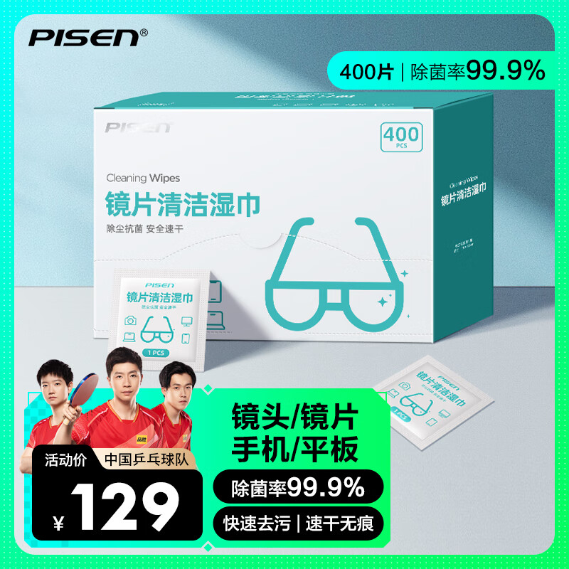 PISEN品胜 眼镜清洁 镜头清洁 屏幕清洁擦手机擦相机 400片加大加厚湿巾价格:129.00元!