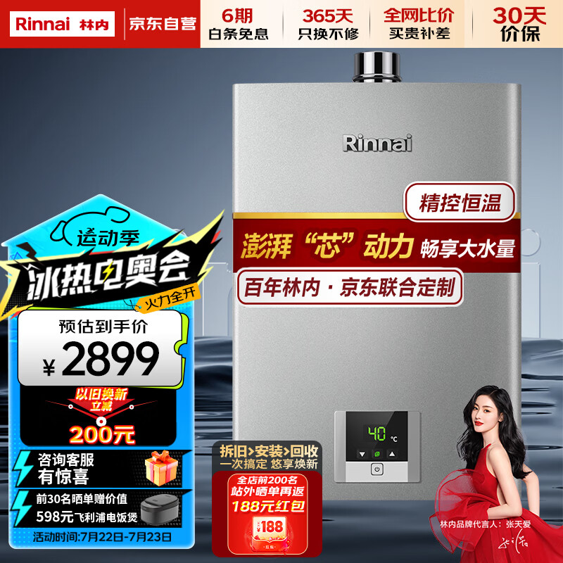 林内(Rinnai)13升燃气热水器 澎湃大水量 百年定制 芯动力系列13QD31(JSQ26-D31)以旧换新价格:2899.00元!