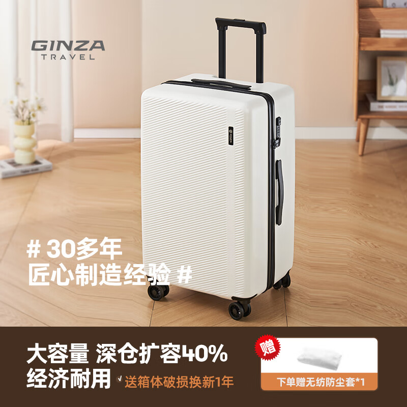银座大容量行李箱深仓扩容旅行箱密码拉杆箱抗压磨A-2023皓月白22英寸价格:279.00元!