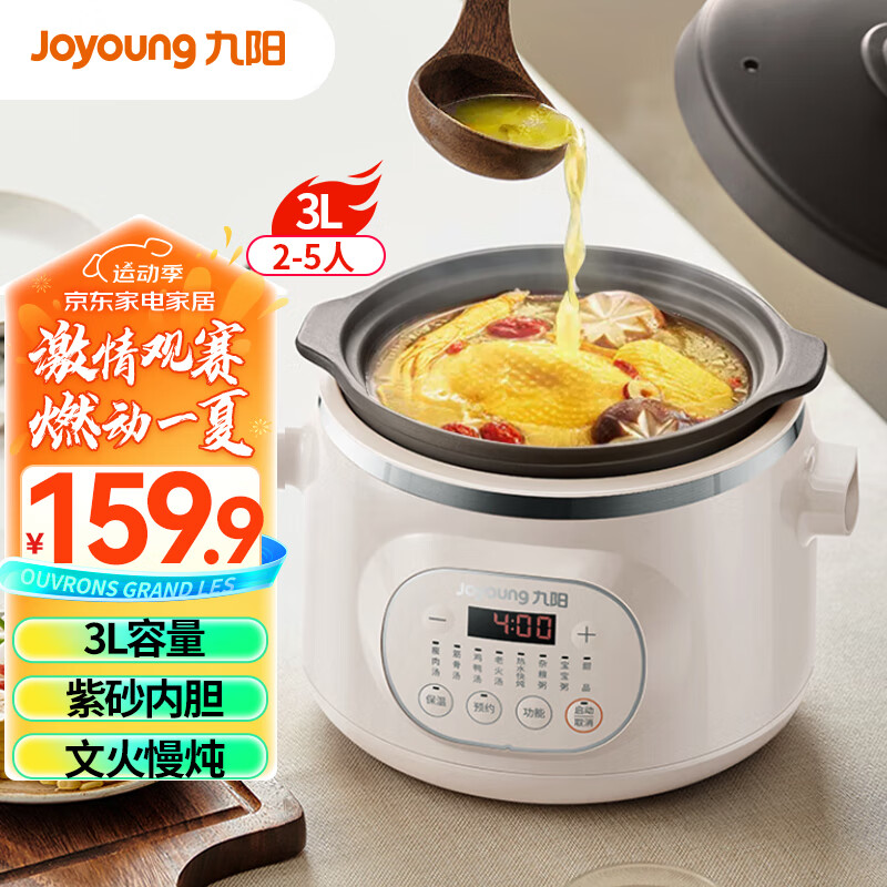 九阳 (Joyoung)电炖锅电炖盅煲汤锅炖汤锅 煮粥锅 紫砂内胆 3升 GD517价格:159.90元!